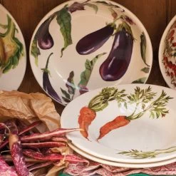 Seconds Vegetable Garden Aubergine & Flowers Medium Pasta Bowl