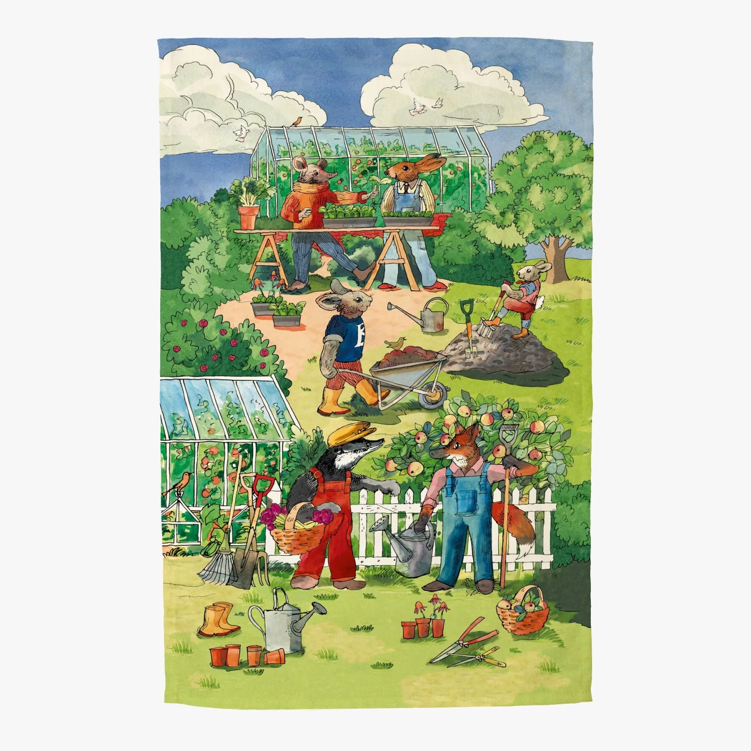 The woodland folk on our A Year In The Country Gardening Tea Towel are so hard at work –goodness, all that sowing and hoeing, seeding and weeding, picking and digging!