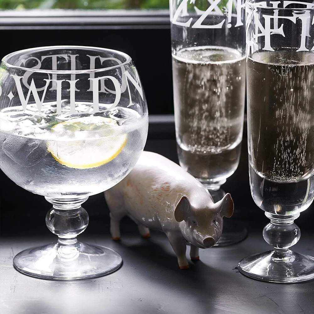 Not to be mistaken for our Goldfish Bowl Vase: our generously-sized Black Toast Gin Glass.