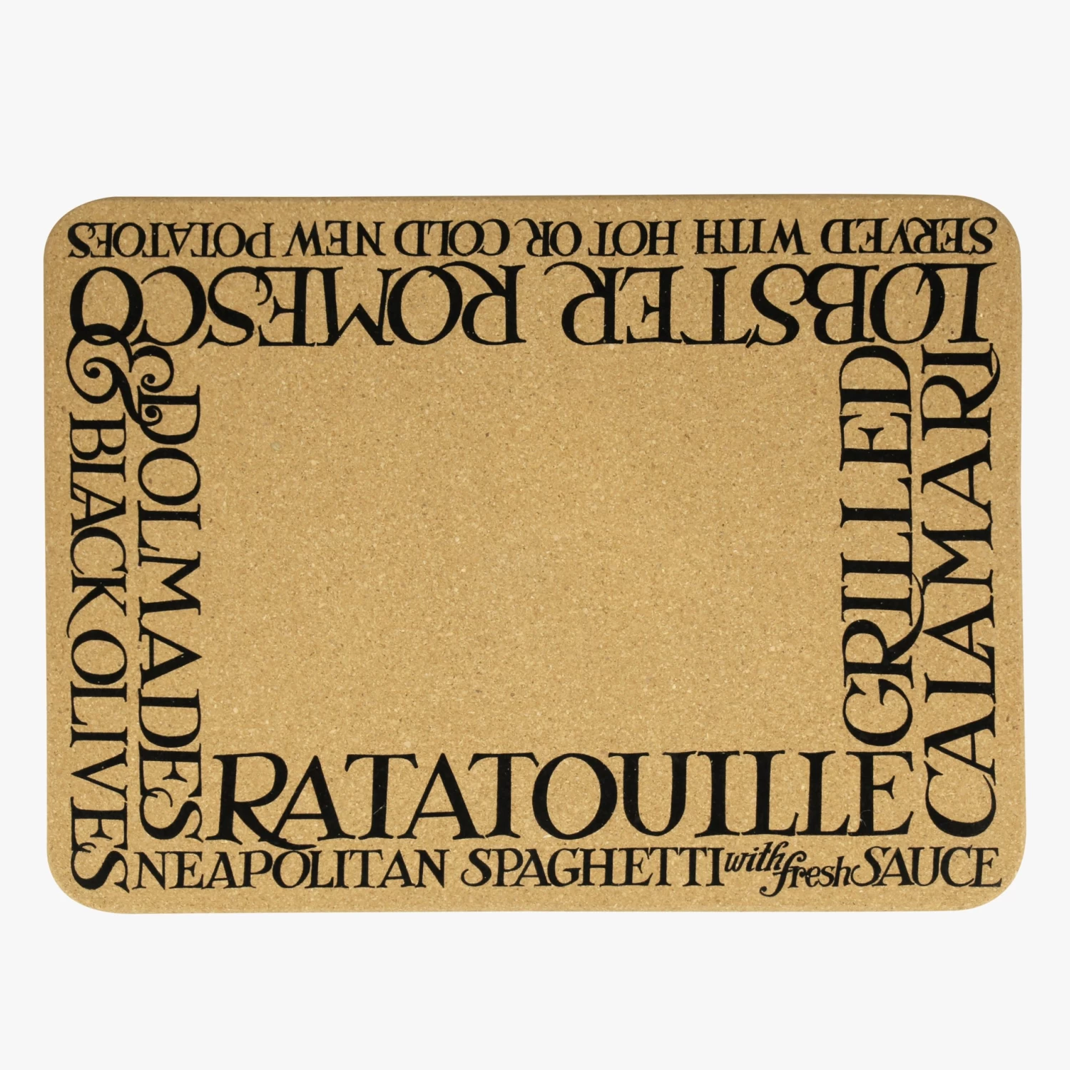 Protect your table and present your culinary triumphs on our Black Toast Rectangular Cork Placemat.