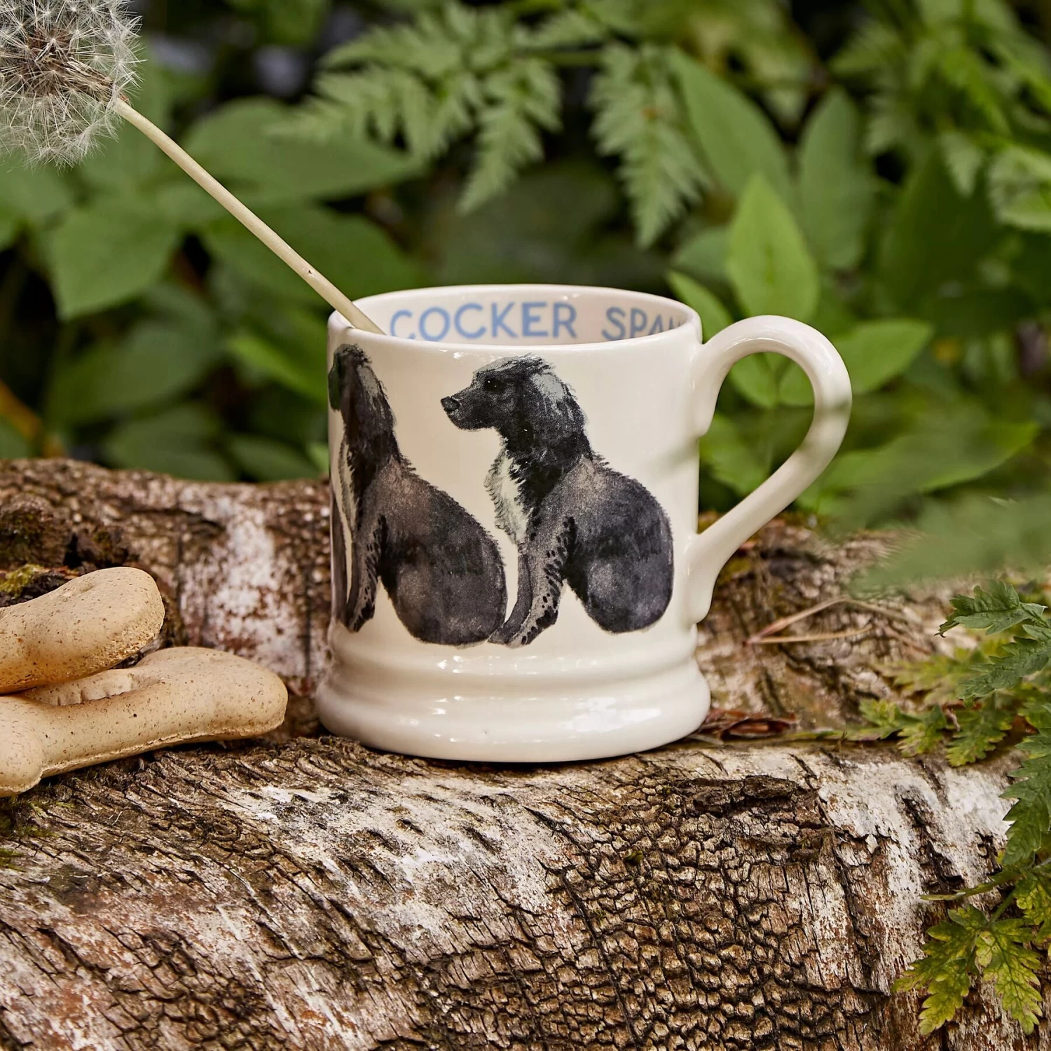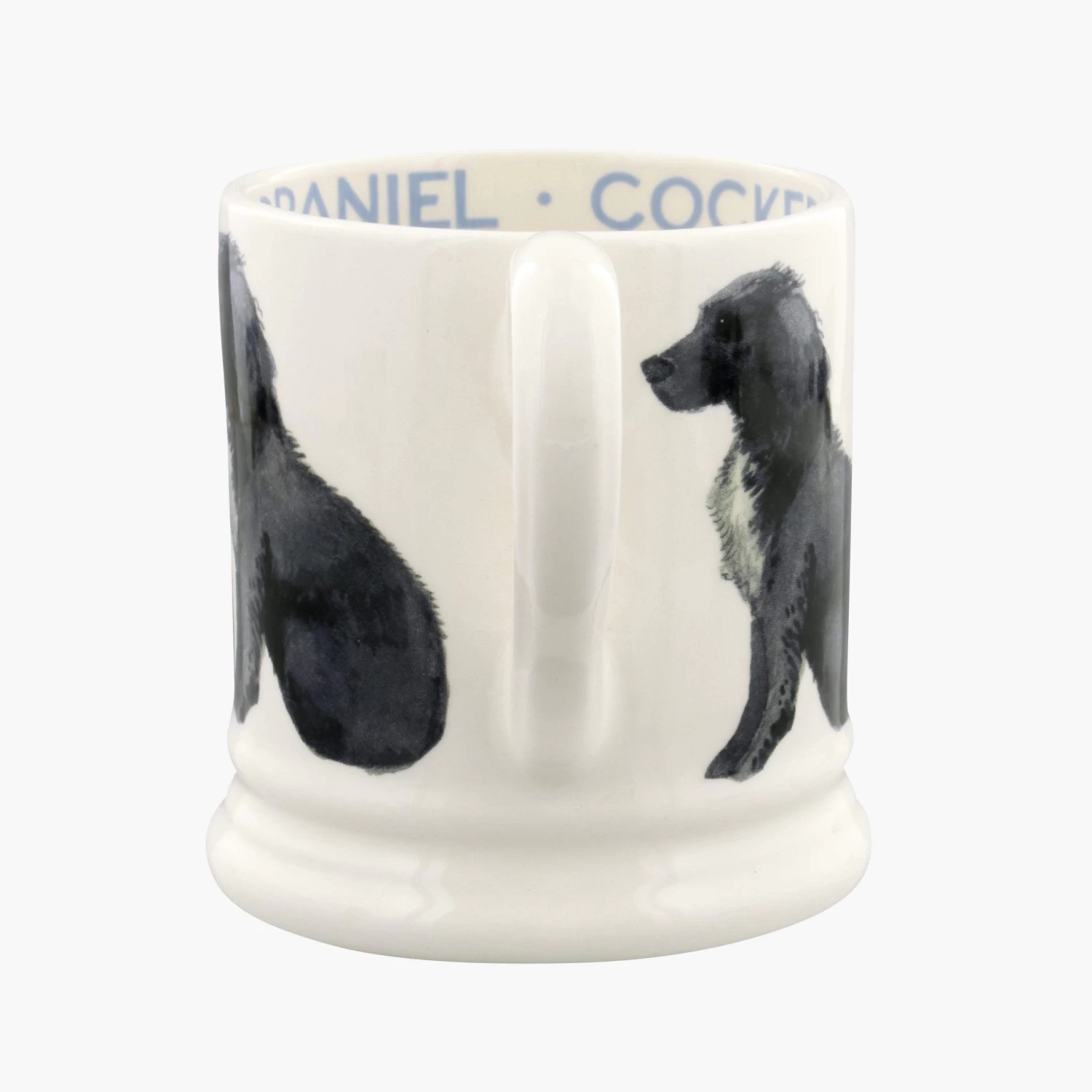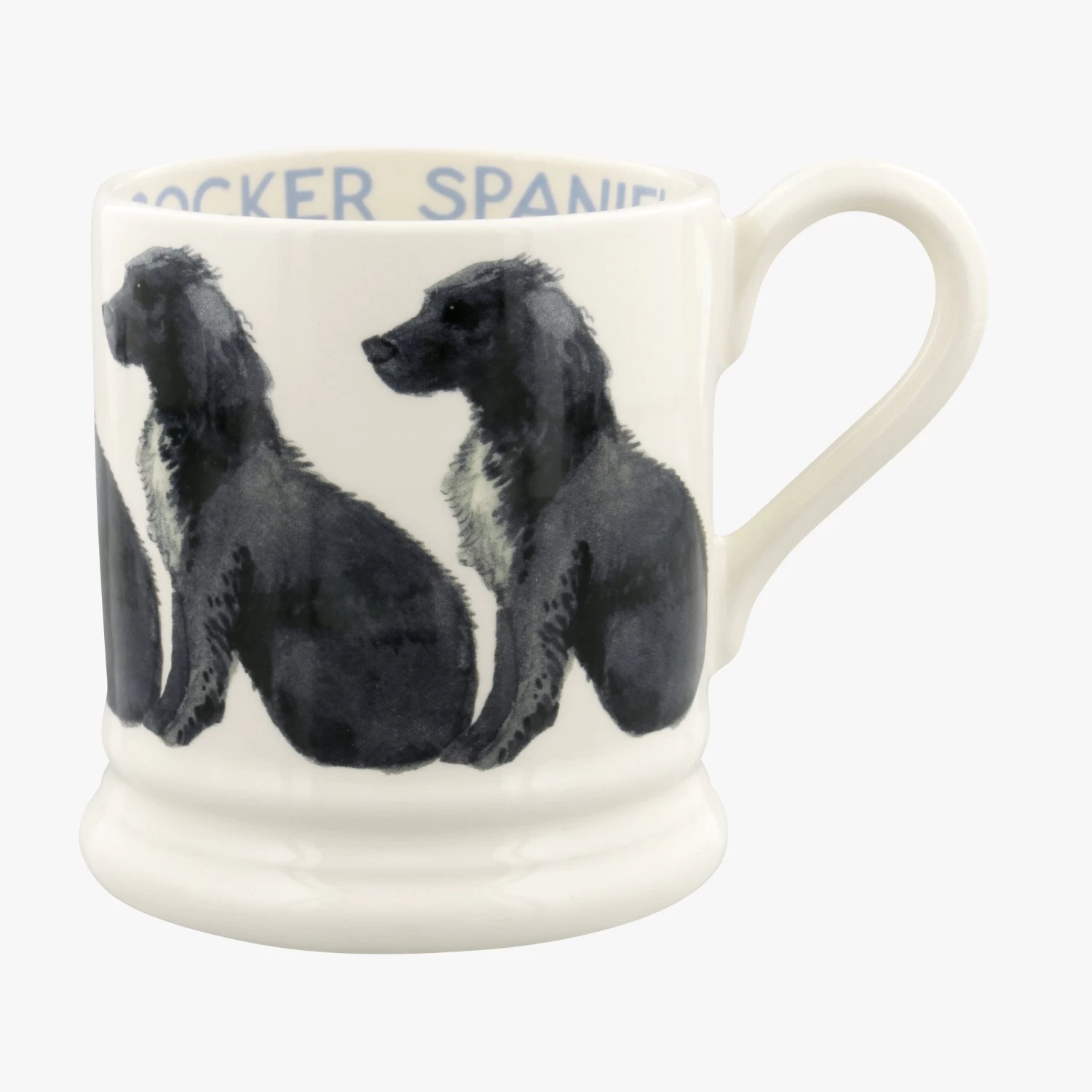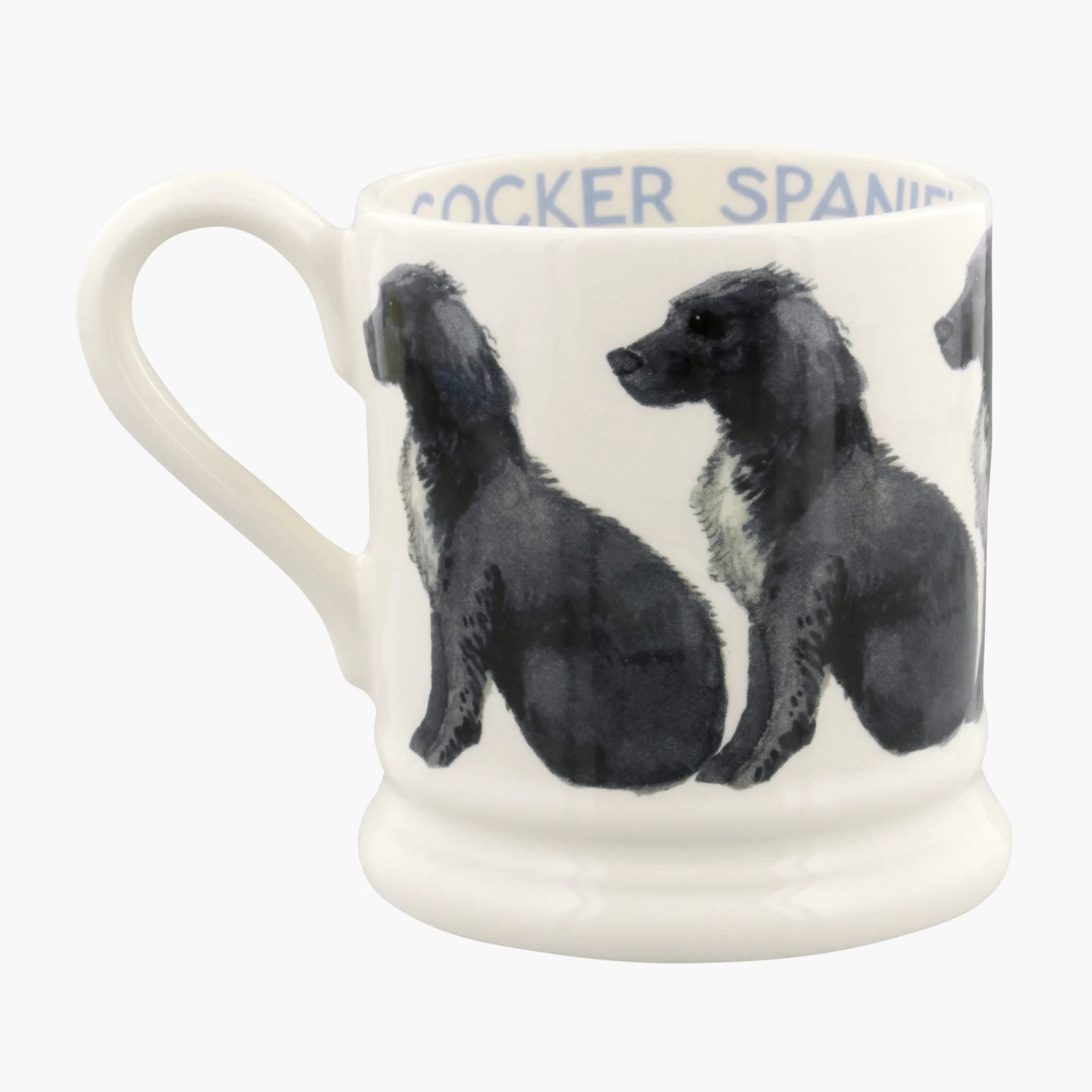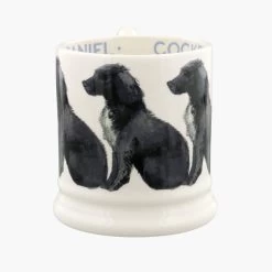 Our Cocker Spaniel Mug is adorned by a row of gentle, black Cocker Spaniels. Crafted from cream earthenware pottery in our Stoke-on-Trent factory, this joyful dogs mug is the perfect gift for Cocker Spaniel lovers. The 1/2 pint mug size is the ideal size for morning coffee or tea.Â
