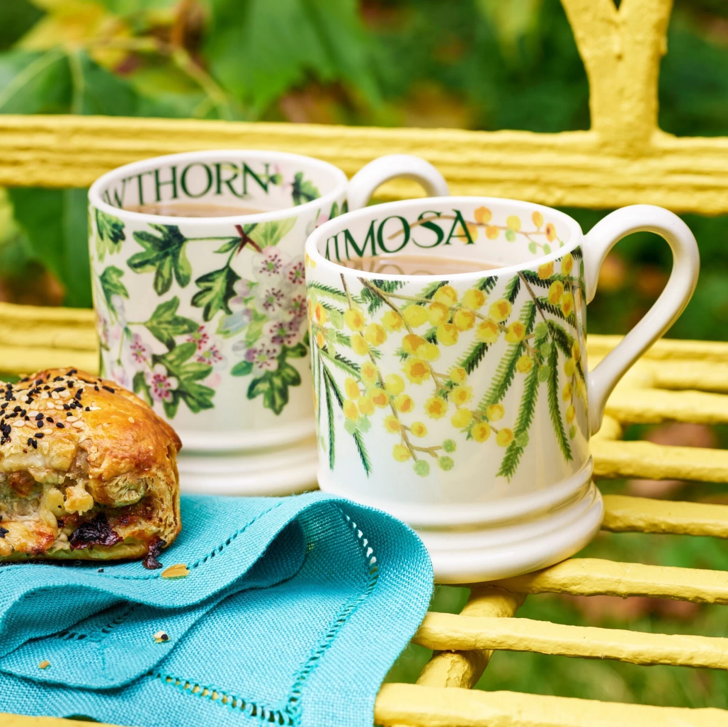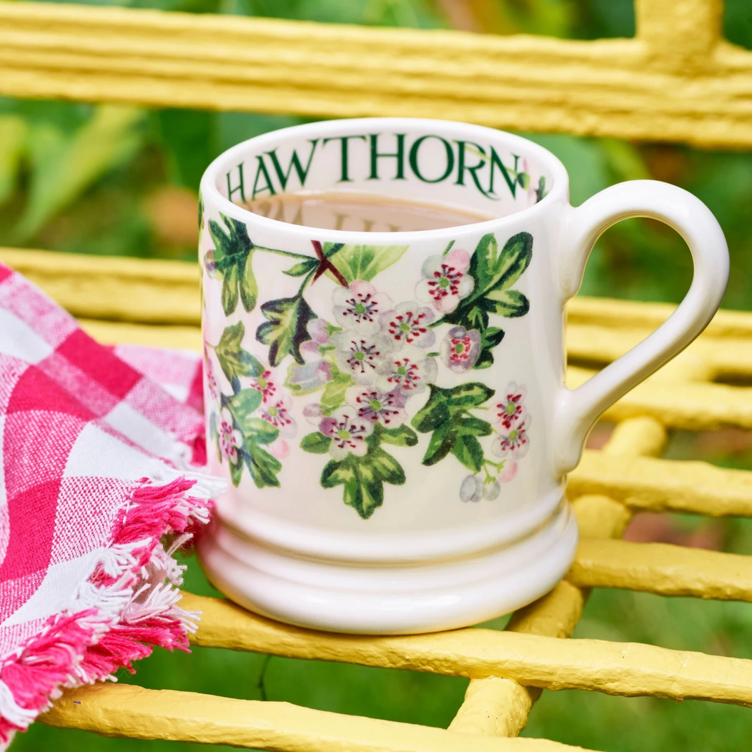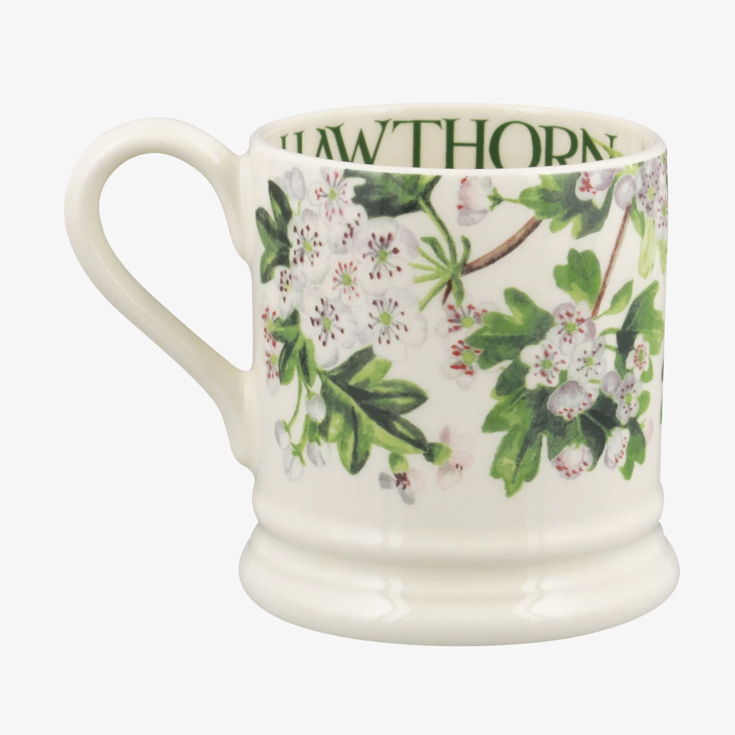 When hawthorn blooms you know that spring is making way for summer and that those masses of highly scented white flowers will soon be teeming with birds, bees and butterflies – enjoy the spectacle while sipping tea from your Hawthorn Tree 1/2 Pint Mug.
