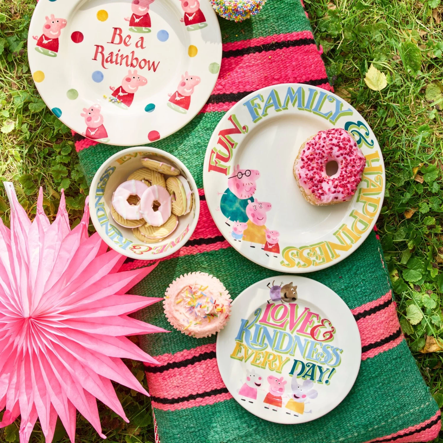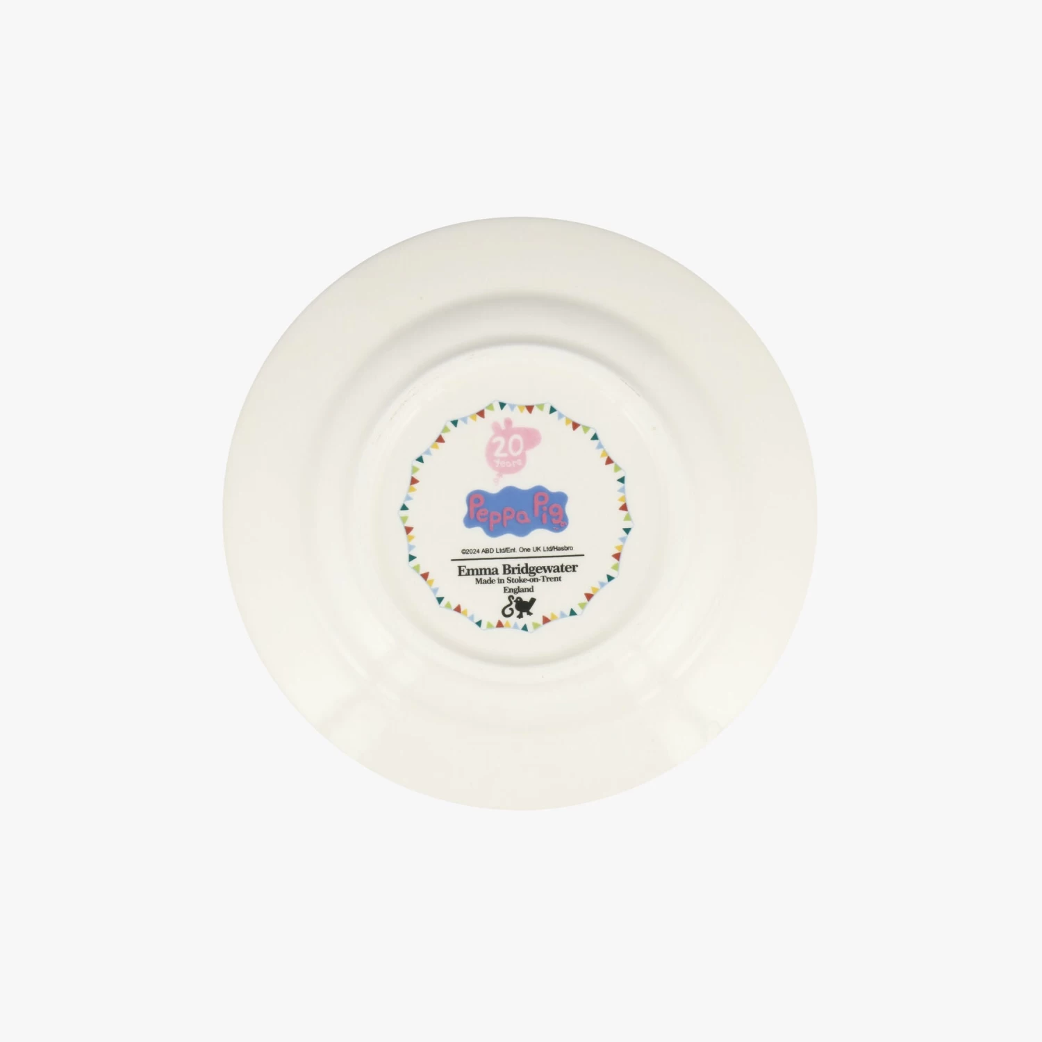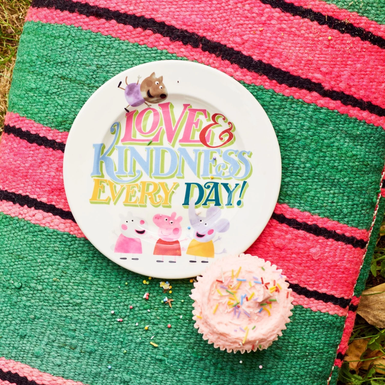 Celebrate the cheerful joy that Peppa Pig has brought everyone for the last 20 years with a slice of cake (with pink icing, of course) on this Peppa Pig Love & Kindness 6 1/2 Inch Plate.