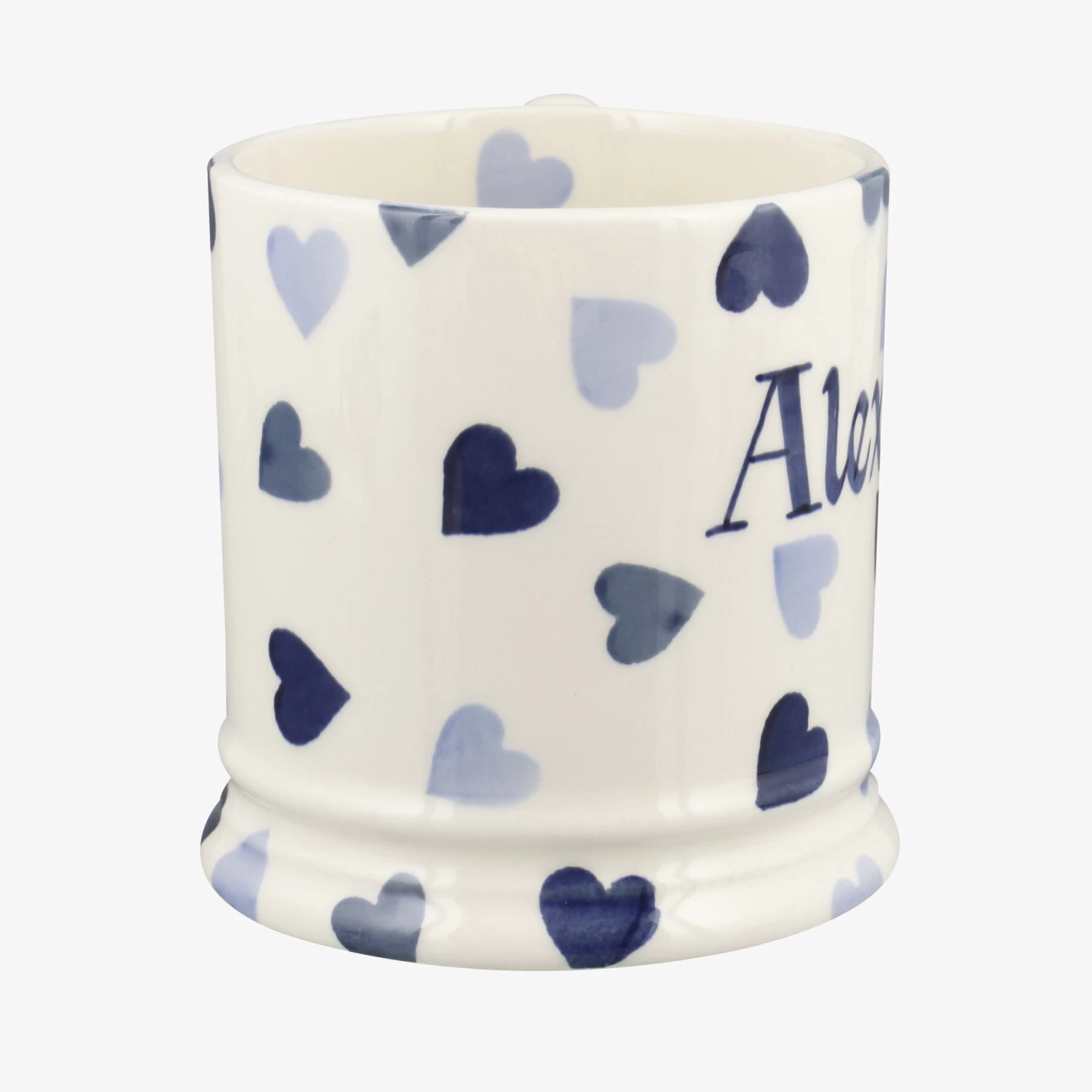 SKU: ZW1TY 679843250183295728130 Categories: Mugs, Tableware Tags: COLLECT: Kitchen, DRESSER: Hearts, FULL_PRICE: true, GIFT: Valentines, LITHO/SPONGE: Sponge, MARK_IF_PERSONALISED: Yes, MATERIAL: Personalised Pottery, NATURE: Personalised Pottery, NEW_ICON: true, PATTERN: Blue Hearts, PERSONALISATION_GUIDE: Mugs, PERSONALISATION: Back body, PERSONALISATION: Base, PERSONALISATION: Front body, PRODUCT_SHAPE_CODE: 3, PRODUCT_TYPE: Mugs, RANGE: Hearts, SHAPE_DESCRIPTION: One Pint Mug, SHAPE_GROUP: Mugs, SS New Flow, STAFF_DISCOUNT: true, TYPE: First