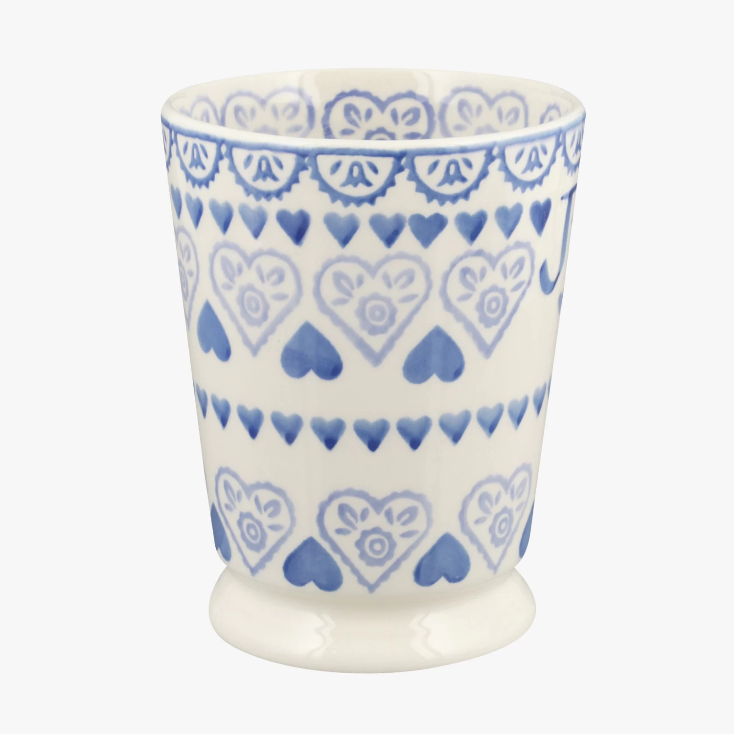 The pattern on this Personalised Blue Sampler Cocoa Mug is inspired by some of Emma’s Victorian spongeware pieces, while the message written on it comes from you. Simply choose what you’d like us to script on the piece and leave the rest to us. All our pottery is handmade and hand-decorated in our factory in Stoke on Trent. Like this pattern but looking for a different shape? Choose a different piece from our Personalised Blue Sampler collection.