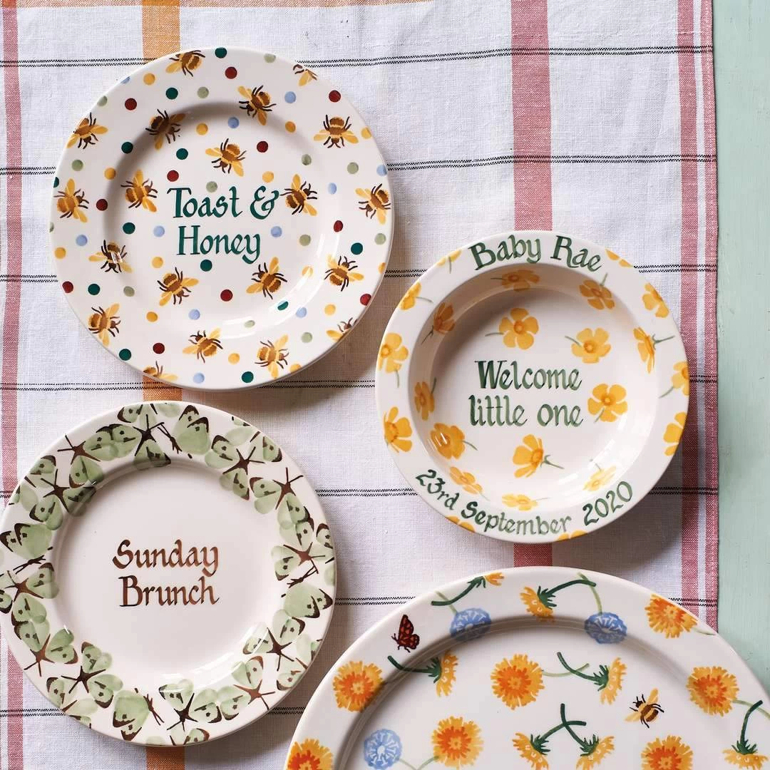 SKU: ZW1TY 586576045677689308278 Categories: Plates, Tableware Tags: COLLECT: Kitchen, COLOUR_PRIMARY: Multi, Core, DRESSER: Bumblebee & Insects, FULL_PRICE: true, LITHO/SPONGE: Sponge, MARK_IF_PERSONALISED: Yes, MATERIAL: Personalised Pottery, NATURE: Personalised Pottery, NEW_ICON: False, PATTERN: Bumblebee & Small Polka Dot, PERS: New Baby, PERSONALISATION_GUIDE: Plate, PERSONALISATION: Base, PERSONALISATION: Bottom edge, PERSONALISATION: Centre, PERSONALISATION: Top edge, PRODUCT_SHAPE_CODE: 63, PRODUCT_TYPE: Plates, RANGE: Bumblebee, RANGE: Insects, SHAPE_DESCRIPTION: Eight and a Half Inch Plate, SHAPE_GROUP: Plates & Platters, SS Core Flow, STAFF_DISCOUNT: true, TYPE: First, WEB1: Polka Dot, WEB2: Bumblebee & Insects, WEB2: Bumblebee & Small Polka Dot, WEB2: Small Creatures