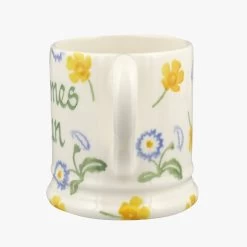 Feel the warmth of the sun on your face and of the coffee in your hands as you cup your Personalised Buttercup & Daisies 1/2 Pint Mug outside the kitchen door of a spring morning.
