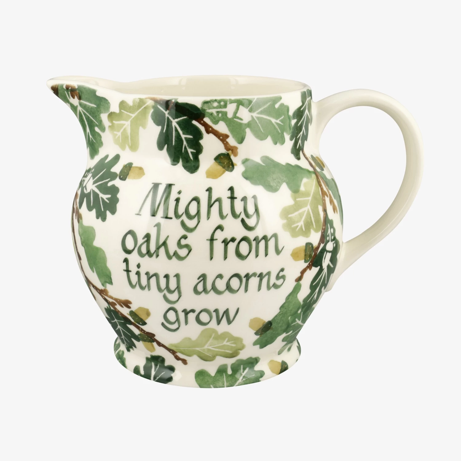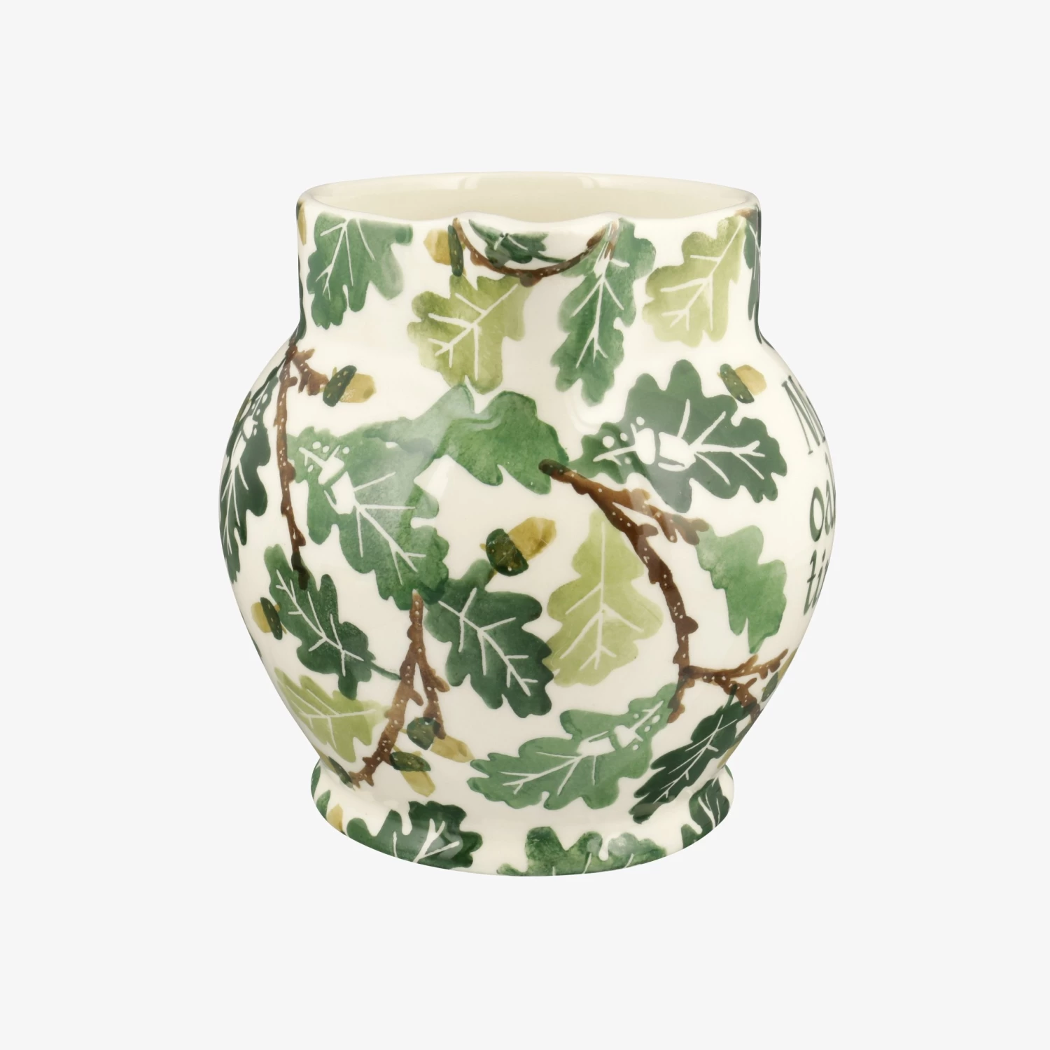 SKU: ZW1TY 656930704596084456884 Categories: Jugs, Tableware Tags: AW22 Phase2, COLLECT: Kitchen, COLLECT: wk4pers, COLOUR_PRIMARY: Green, COLOUR_SECONDARY: Brown, DRESSER: Flowers & Plants, FULL_PRICE: true, LITHO/SPONGE: Sponge, MARK_IF_PERSONALISED: Yes, MATERIAL: Personalised Pottery, NATURE: Personalised Pottery, NEW_ICON: False, PATTERN: Oak, PERSONALISATION_GUIDE: Jug, PERSONALISATION_GUIDE: Milk Bottle, PERSONALISATION: Back body, PERSONALISATION: Base, PERSONALISATION: Front body, PRODUCT_SHAPE_CODE: 32, PRODUCT_TYPE: Jugs & Carafes, RANGE: Flowers, RANGE: Life In The Country, SHAPE_DESCRIPTION: 3 Pint Jug, SHAPE_GROUP: Jugs, SS Core Flow, STAFF_DISCOUNT: true, TYPE: First, WEB1: Flowers & Plants, WEB2: Oak, WEB2: Trees & Hedgerows