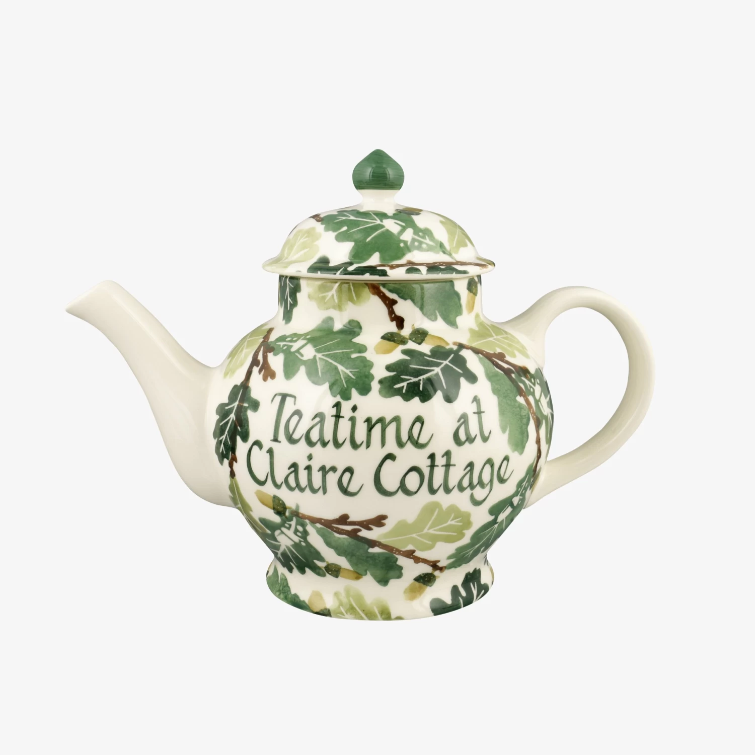 SKU: ZW1TY 656930884820074246548 Categories: Tableware, Teapots, Cups & Saucers Tags: AW22 Phase2, COLLECT: BF, COLLECT: Kitchen, COLOUR_PRIMARY: Green, COLOUR_SECONDARY: Brown, Cups & Saucers, DRESSER: Flowers & Plants, FULL_PRICE: true, LITHO/SPONGE: Sponge, MARK_IF_PERSONALISED: Yes, MATERIAL: Personalised Pottery, NATURE: Personalised Pottery, NEW_ICON: False, PATTERN: Oak, PERSONALISATION_GUIDE: Teapot, PERSONALISATION: Back body, PERSONALISATION: Base, PERSONALISATION: Front body, PRODUCT_SHAPE_CODE: 1859, PRODUCT_TYPE: Teapots, RANGE: Flowers, RANGE: Life In The Country, SHAPE_DESCRIPTION: 4 Mug Teapot, SHAPE_GROUP: Teapots, SS Core Flow, STAFF_DISCOUNT: true, TYPE: First, WEB1: Flowers & Plants, WEB2: Oak, WEB2: Trees & Hedgerows
