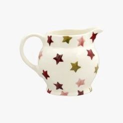 SKU: ZW1TY 436238775098474274041 Categories: Jugs, Tableware Tags: COLLECT: Kitchen, COLOUR_PRIMARY: Pink, COLOUR_SECONDARY: Gold, Discontinued, DRESSER: Stars, FULL_PRICE: true, LITHO/SPONGE: Sponge, MARK_IF_PERSONALISED: Yes, MATERIAL: Personalised Pottery, NATURE: Personalised Pottery, NEW_ICON: False, PATTERN: Pink & Gold Stars, PERSONALISATION: Front body, PRODUCT_SHAPE_CODE: 134, PRODUCT_TYPE: Decorations, RANGE: IWD, RANGE: Stars, SHAPE_DESCRIPTION: Tiny Jug, SHAPE_GROUP: Tree Decorations, SS New Flow, STAFF_DISCOUNT: true, WEB2: Decoration
