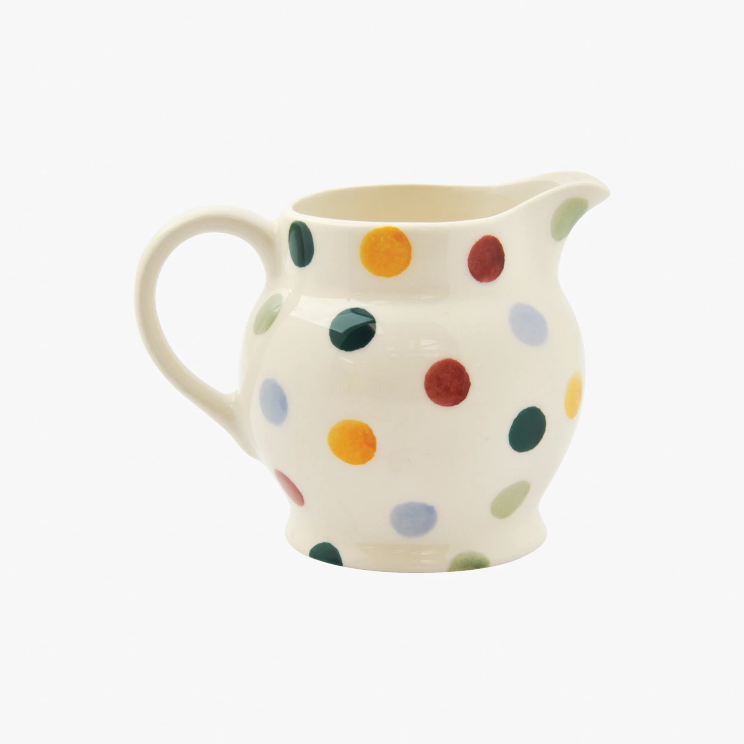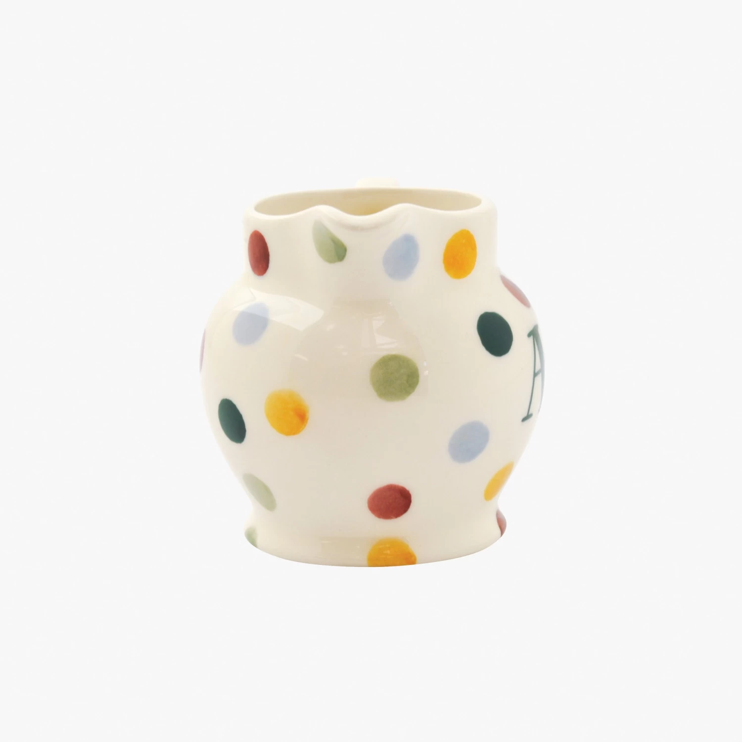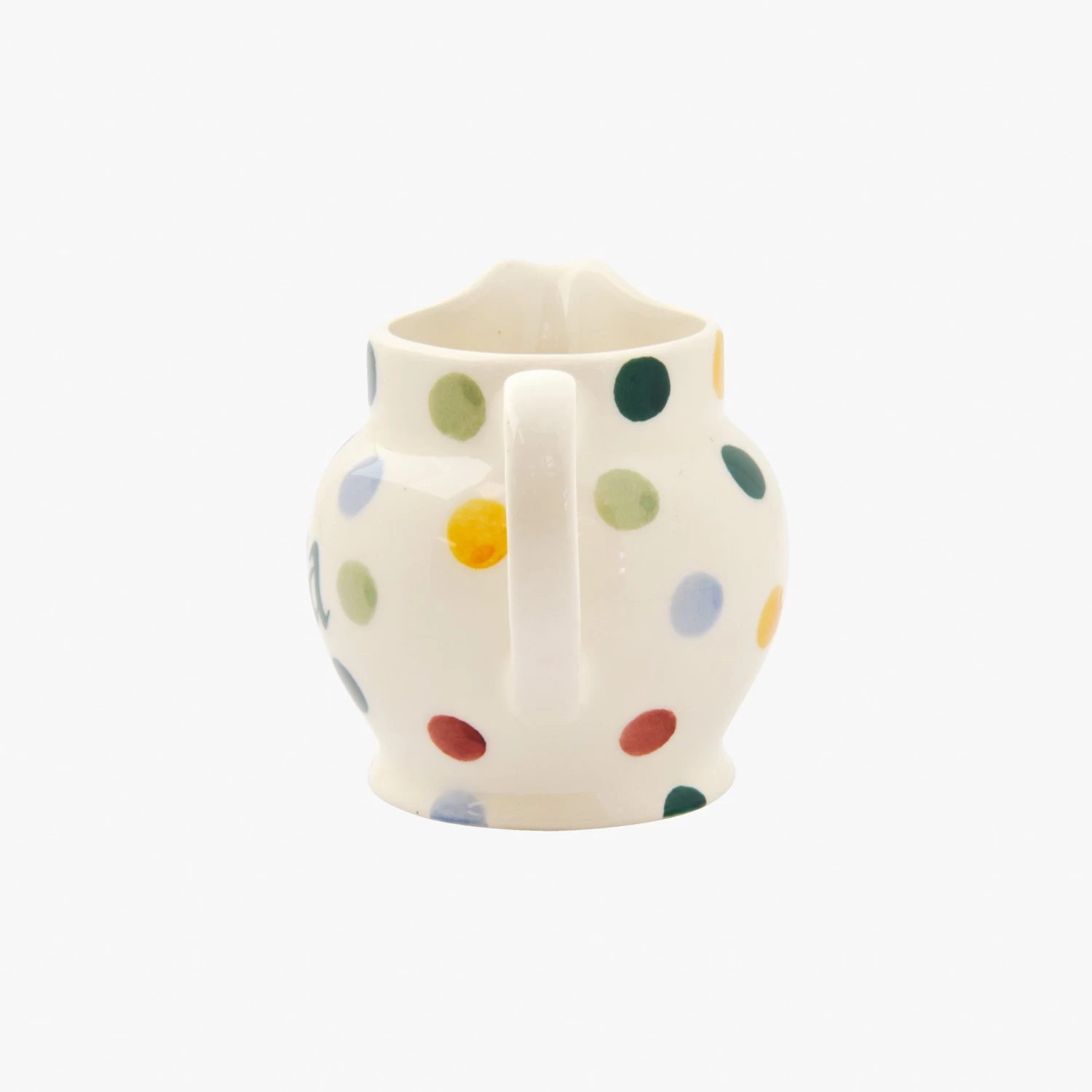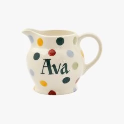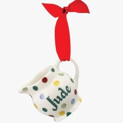 SKU: ZW1TY 37945275187617225948 Categories: Jugs, Tableware Tags: COLLECT: Kitchen, COLLECT: Living, COLOUR_PRIMARY: Multi, Discontinued, DRESSER: Polka Dot, FULL_PRICE: true, LITHO/SPONGE: Sponge, MARK_IF_PERSONALISED: Yes, MATERIAL: Personalised Pottery, NATURE: Personalised Pottery, NEW_ICON: False, PATTERN: Polka Dot, PERSONALISATION: Front body, PRODUCT_SHAPE_CODE: 134, PRODUCT_TYPE: Decorations, RANGE: Polka Dot, SHAPE_DESCRIPTION: Tiny Jug, SHAPE_GROUP: Tree Decoration, SS New Flow, STAFF_DISCOUNT: true, TYPE: First, WEB2: Decoration
