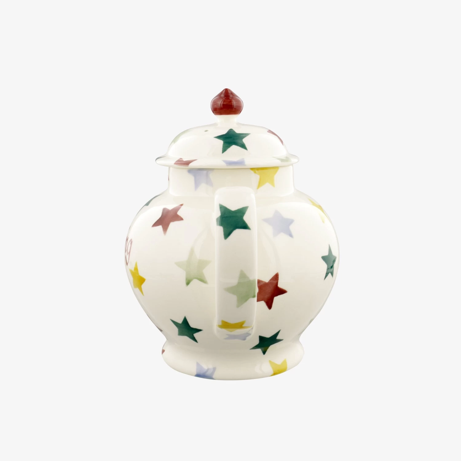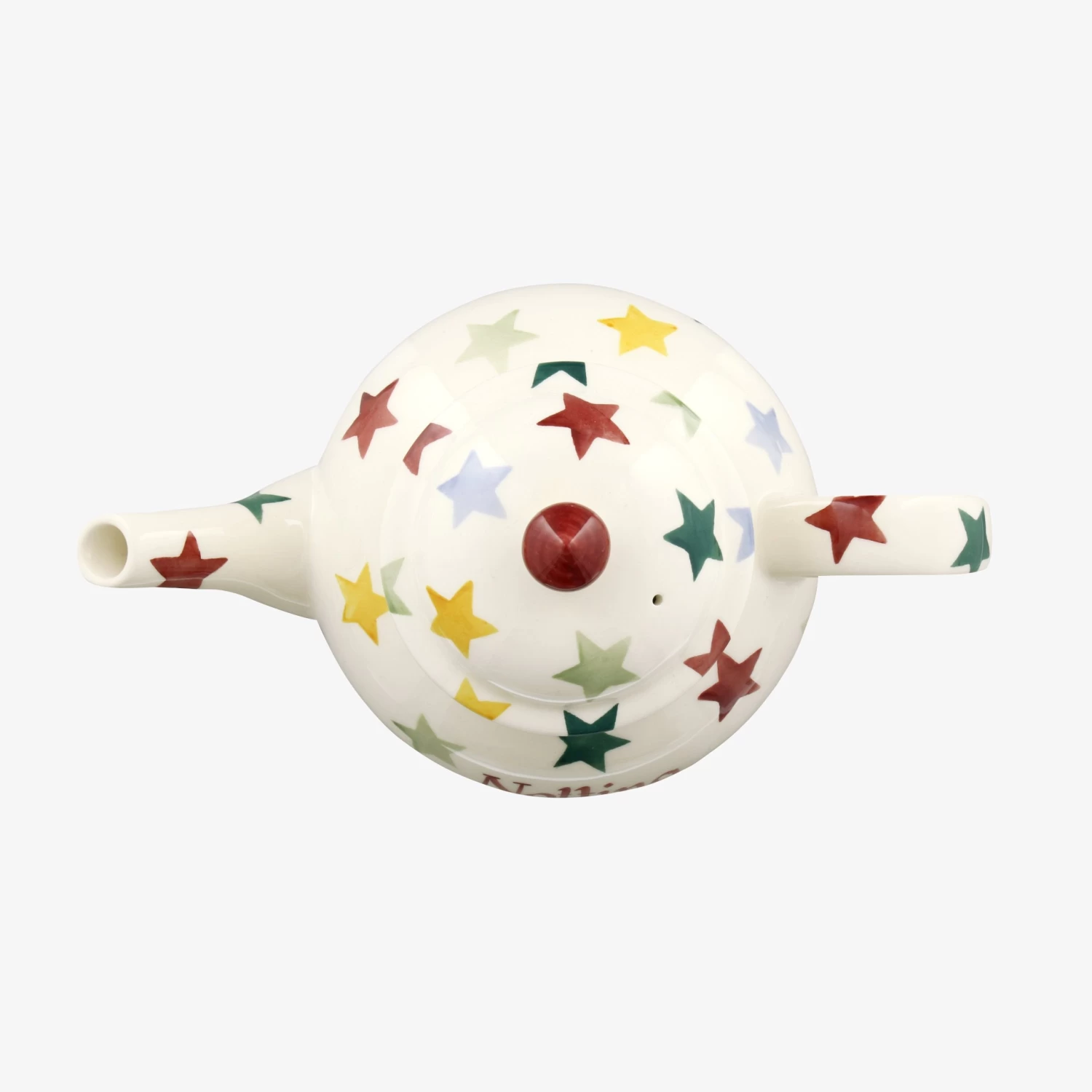 SKU: ZW1TY 524653006036019276845 Categories: Tableware, Teapots, Cups & Saucers Tags: COLLECT: Kitchen, COLOUR_PRIMARY: Multi, Core, Cups & Saucers, DRESSER: Stars, FULL_PRICE: true, LITHO/SPONGE: Sponge, MARK_IF_PERSONALISED: Yes, MATERIAL: Personalised Pottery, NATURE: Personalised Pottery, NEW_ICON: False, PATTERN: Polka Star, PERS: Birthdays, PERSONALISATION_GUIDE: Teapot, PERSONALISATION: Back body, PERSONALISATION: Base, PERSONALISATION: Front body, PRODUCT_SHAPE_CODE: 1859, PRODUCT_TYPE: Teapots, RANGE: Polka Dot, RANGE: Stars, SHAPE_DESCRIPTION: 4 Mug Teapot, SHAPE_GROUP: Teapots, SS New Flow, STAFF_DISCOUNT: true, TYPE: First, WEB1: Polka Dot, WEB2: Polka Star