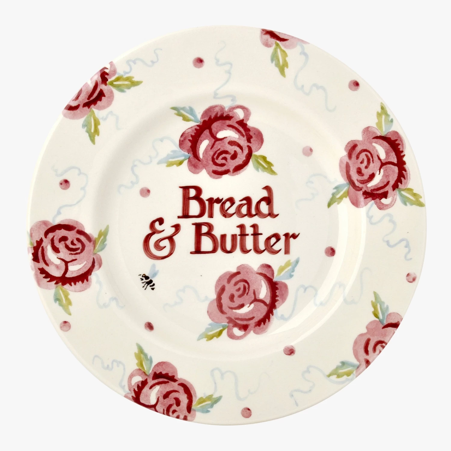 SKU: ZW1TY 37951248794089548047 Categories: Plates, Tableware Tags: COLLECT: Kitchen, COLOUR_PRIMARY: Pink, Discontinued, DRESSER: Classics, FULL_PRICE: true, LITHO/SPONGE: Sponge, MARK_IF_PERSONALISED: Yes, MATERIAL: Personalised Pottery, NATURE: Personalised Pottery, NEW_ICON: true, PATTERN: Rose & Bee, PERSONALISATION_GUIDE: Plate, PERSONALISATION: Base, PERSONALISATION: Bottom edge, PERSONALISATION: Centre, PERSONALISATION: Top edge, PRODUCT_SHAPE_CODE: 63, PRODUCT_TYPE: Plates, RANGE: Roses, SHAPE_DESCRIPTION: Eight and a Half Inch Plate, SHAPE_GROUP: Plates & Platters, SS Carryover Flow, STAFF_DISCOUNT: true, TYPE: First