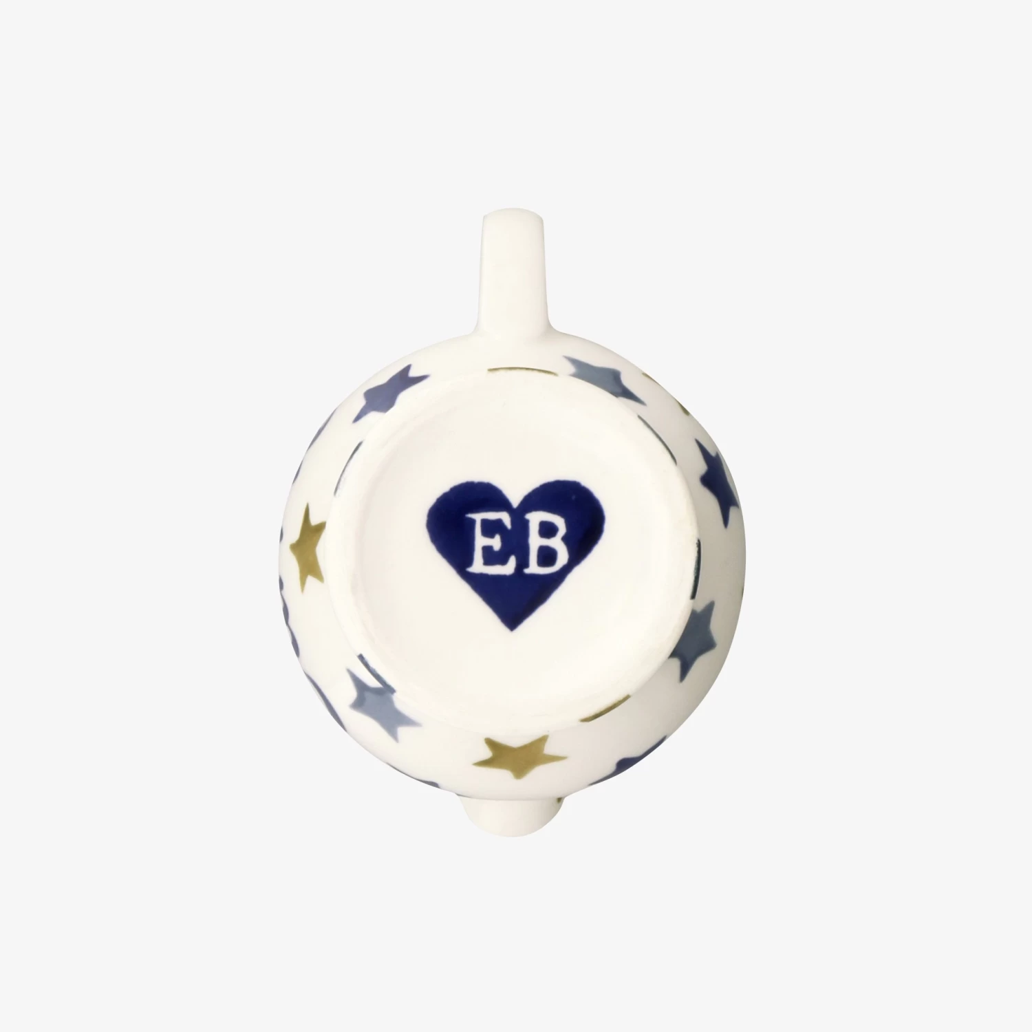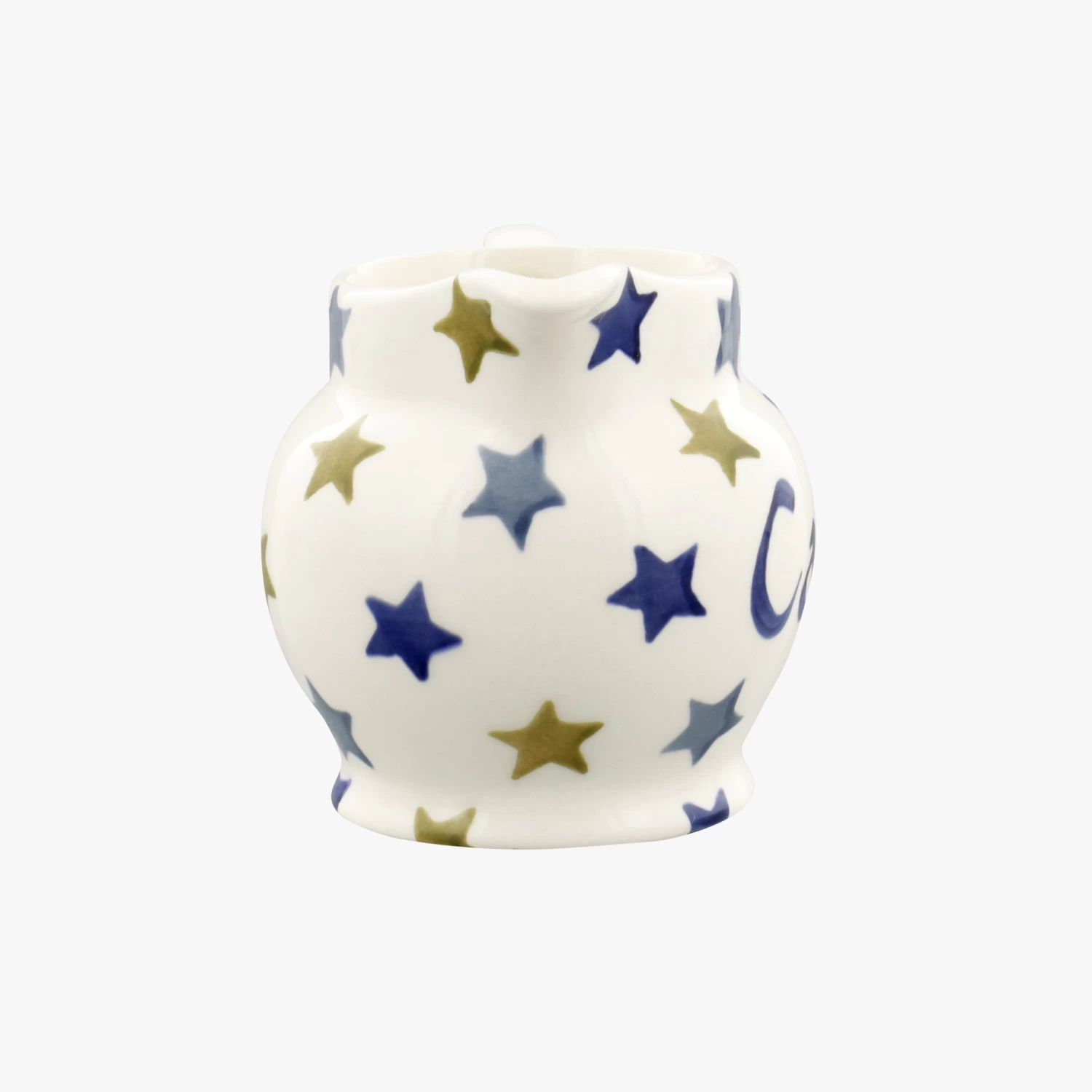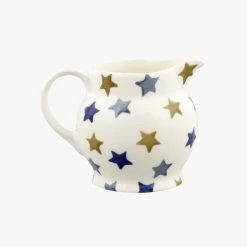 SKU: ZW1TY 524654008736873075676 Categories: Jugs, Tableware Tags: COLLECT: Christmas Decs, COLLECT: Kitchen, COLOUR_PRIMARY: Blue, COLOUR_SECONDARY: Gold, Discontinued, DRESSER: Stars, FULL_PRICE: true, LITHO/SPONGE: Sponge, MARK_IF_PERSONALISED: Yes, MATERIAL: Personalised Pottery, NATURE: Personalised Pottery, NEW_ICON: true, PATTERN: Stormy Stars, PERSONALISATION_GUIDE: Decoration, PERSONALISATION: Back body, PERSONALISATION: Front body, PRODUCT_SHAPE_CODE: 134, PRODUCT_TYPE: Decorations, RANGE: Stars, SHAPE_DESCRIPTION: Tiny Jug, SHAPE_GROUP: Jugs, SS New Exit, STAFF_DISCOUNT: true, TYPE: First, WEB2: Decoration