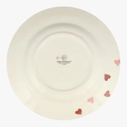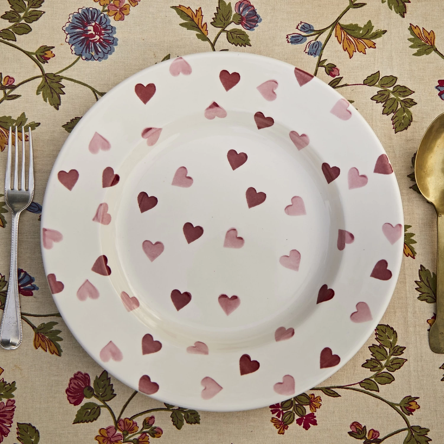 Serve a romantic meal from this sweet Pink Hearts Plate. This 10.5 inch plate is perfect as a lunch or dinner plate. The heart plate is made from cream earthenware, and hand-decorated in Stoke on Trent. The hand-sponged Pink Hearts pattern is inspired by drifts of confetti left on the pavement after a wedding.Â