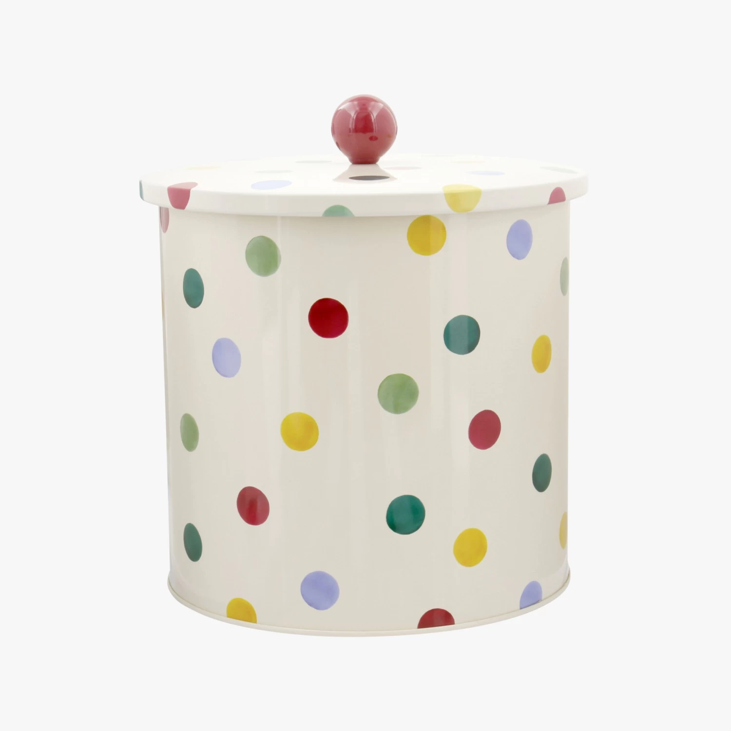 SKU: ZW1TY 37920040550839691601 Categories: Decorative & Colourful Kitchen Accessories, Tins & Food Storage Tags: COLLECT: Afternoon Tea, COLLECT: Kitchen, COLOUR_PRIMARY: Multi, DRESSER: Wild Flowers, FULL_PRICE: true, GIFT: Baking, GIFT: Christmas, GIFT: Eco Friendly, MATERIAL: Metal, NATURE: Tin, NEW_ICON: False, PATTERN: Polka Dot, PRODUCT_SHAPE_CODE: 467, PRODUCT_TYPE: Storage Tins, RANGE: Homeproducts, RANGE: Polka Dot, SHAPE_DESCRIPTION: Tin Biscuit Barrel, SHAPE_GROUP: Storage, SS Core Flow, STAFF_DISCOUNT: true, TYPE: First, WEB1: Polka Dot, WEB2: Polka Dot