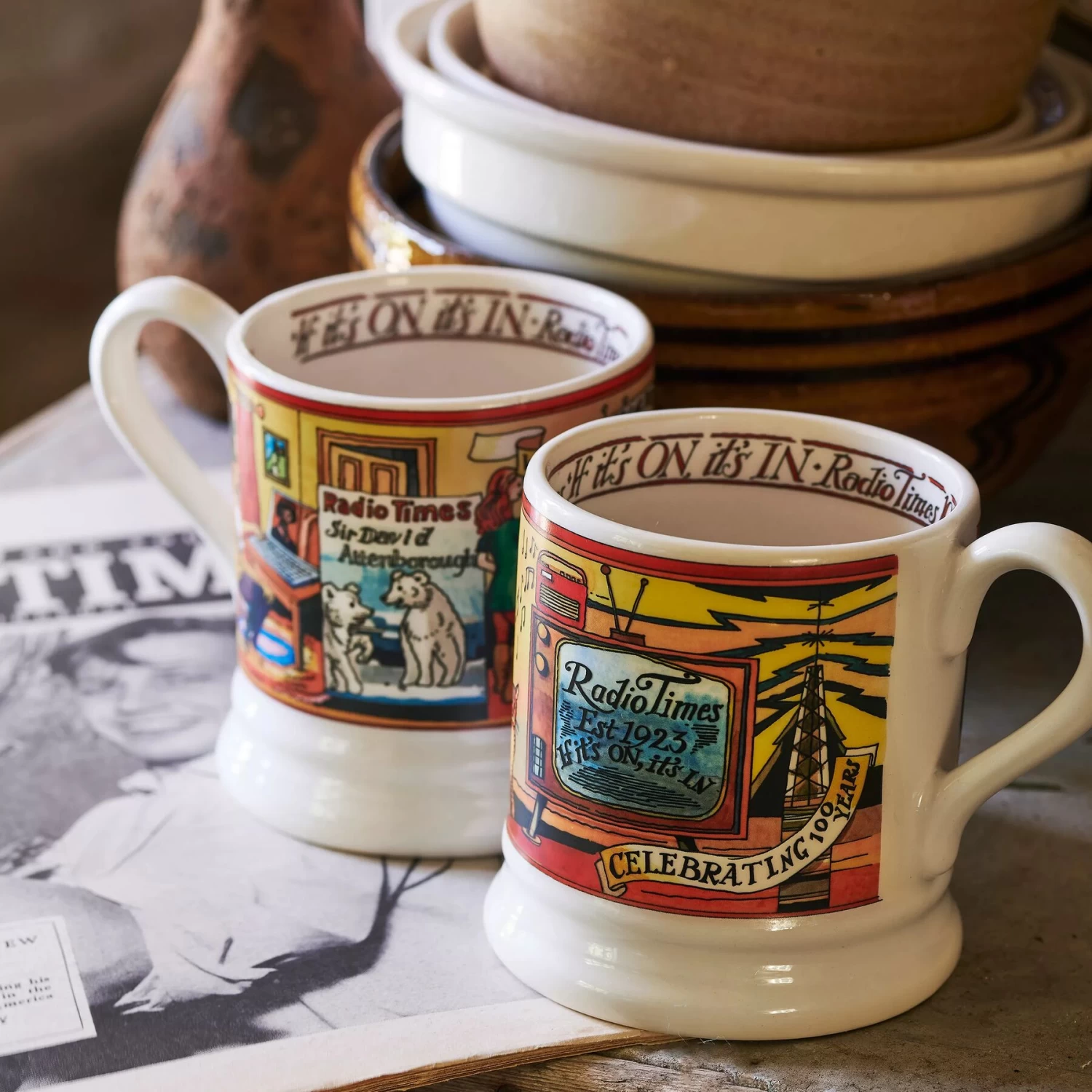 SKU: ZW1TY 676648206343214287921 Categories: Mugs, Tableware Tags: COLLECT: Kitchen, DRESSER: British, FULL_PRICE: true, LITHO/SPONGE: Litho, MATERIAL: First Pottery, NATURE: First Pottery, NEW_ICON: False, PATTERN: Radio Times, PRODUCT_SHAPE_CODE: 2, PRODUCT_TYPE: Mugs, RANGE: British, SHAPE_DESCRIPTION: Half Pint Mug, SHAPE_GROUP: Mugs, SS Carryover Exit, STAFF_DISCOUNT: true, TYPE: First, WEB1: People Places Events, WEB2: Events & Anniversaries