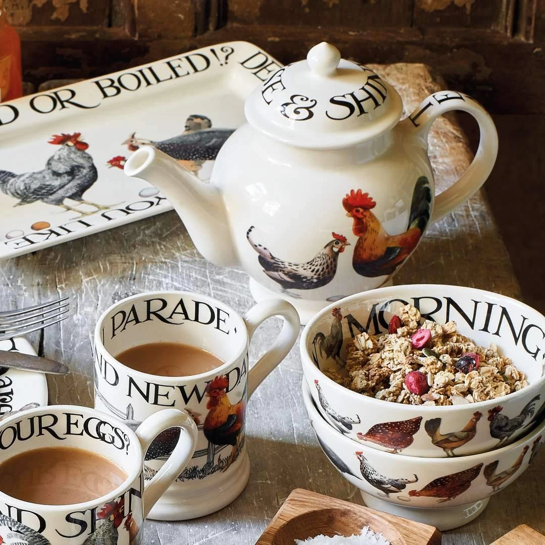 Pop the deepest brown eggs into this Rise & Shine French Bowl: their colours go beautifully with this pattern and bring out the flashes of warm gold, bright yellow and deep red.