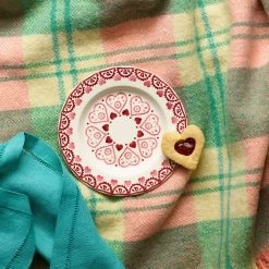 First launched in 2011, our Pink Sampler pattern is inspired by some of Emma’s Victorian spongeware pieces, and mixes perfectly with our perennial Pink Hearts for an unashamedly pretty confection. This sweet 6 1/2 Inch Plate is made for a teatime treat.Â