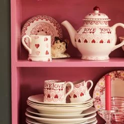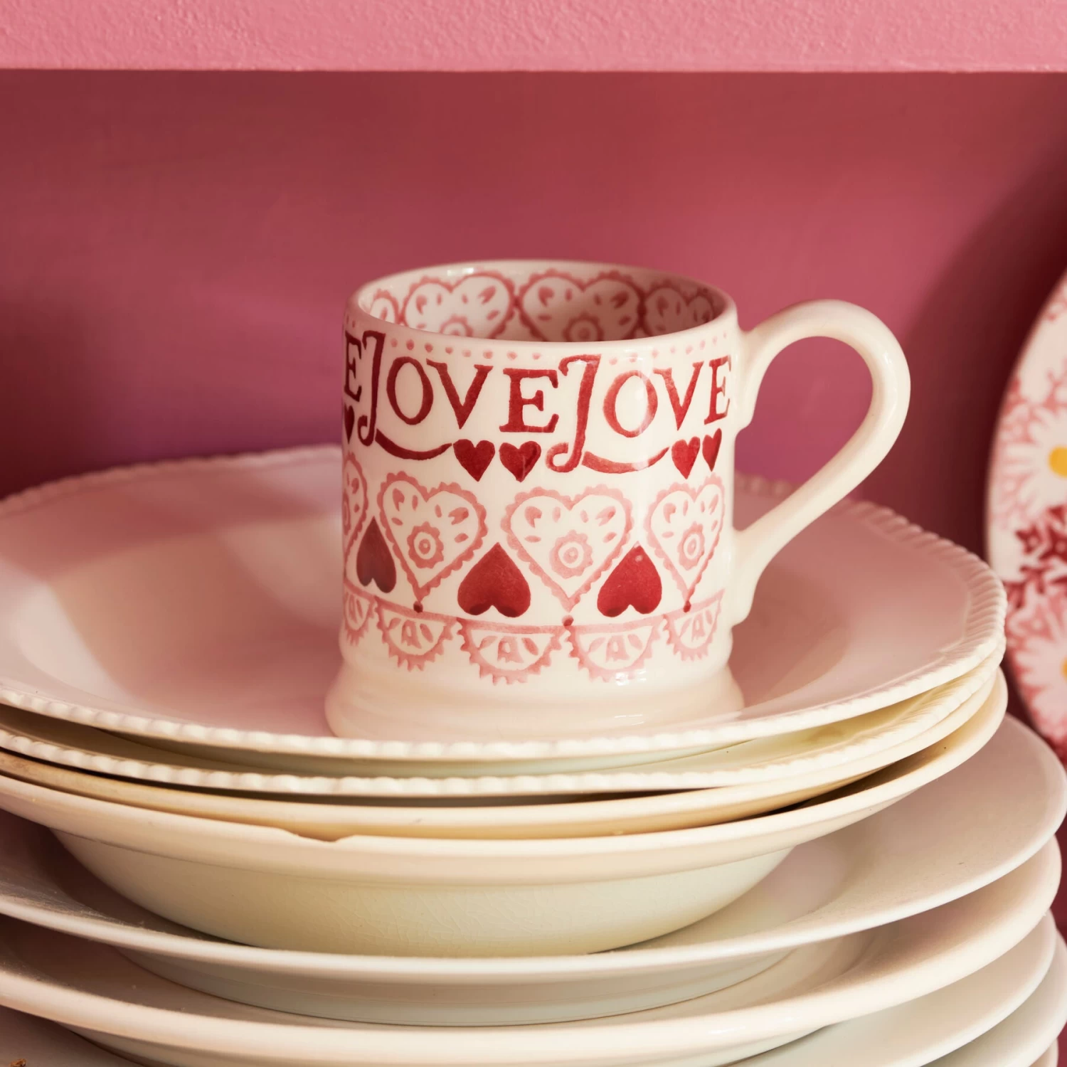 First launched in 2011, our Pink Sampler pattern is inspired by some of Emma’s Victorian spongeware pieces, and mixes perfectly with our perennial Pink Hearts for an unashamedly pretty confection. This pretty 1/2 Pint Mug will make tea breaks all the more relaxing.