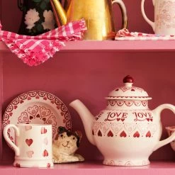 First launched in 2011, our Pink Sampler pattern is inspired by some of Emma’s Victorian spongeware pieces, and mixes perfectly with our perennial Pink Hearts for an unashamedly pretty confection. This 4 Cup Teapot will look perfect taking centre stage in an afternoon tea with friends.