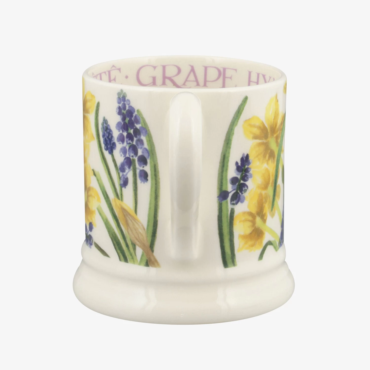Little bells of cobalt blue on grape hyacinths harmonise so perfectly with the deep gold trumpets of miniature daffodils – as seen here on our Tete-A-Tete & Grape Hyacinth 1/2 Pint Mug.