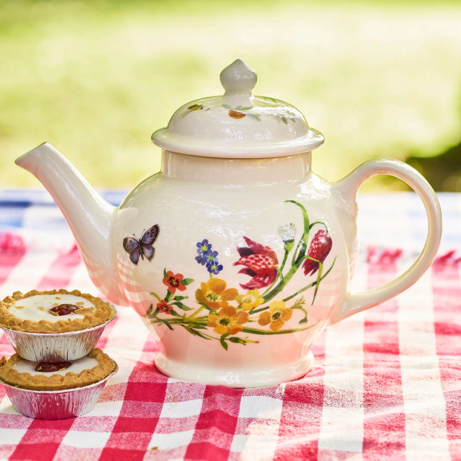 The snipping of pruning shears, the spinning spray of the sprinkler, the buzz of sleepy insects among flowers and the laughter while taking tea with a good friend in the garden are the sounds of a perfect summer’s day. Our Wild Flowers 3 Mug Teapot completes the scene.